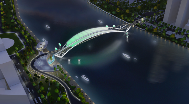 Phối cảnh cầu đi bộ bắc qua sông Sài Gòn.