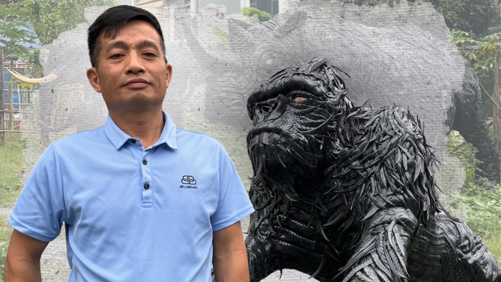 Đầu năm 2023, trong một lần đọc được bài viết về chàng trai trẻ ở Bến Tre dùng hơn 200 chiếc lốp xe máy cũ đắp lên khung sắt tạo thành mô hình khỉ đột khổng lồ trong bộ phim King Kong, anh Toàn nghĩ bụng: “Người ta làm được, mình sao lại không?”