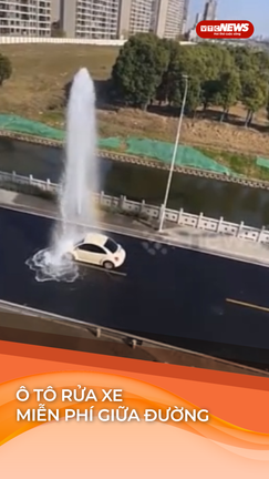 Những chiếc ô tô nối nhau rửa xe miễn phí từ ống nước bị vỡ giữa đường ở Trung Quốc.