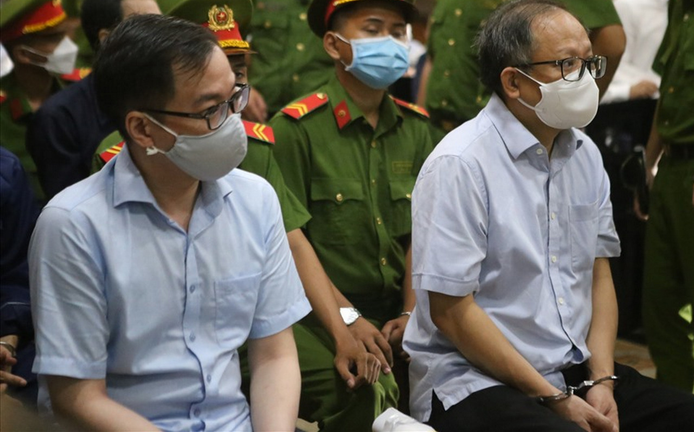 Bị cáo Tề Trí Dũng (trái) và bị cáo Tất Thành Cang (phải) tại tòa.