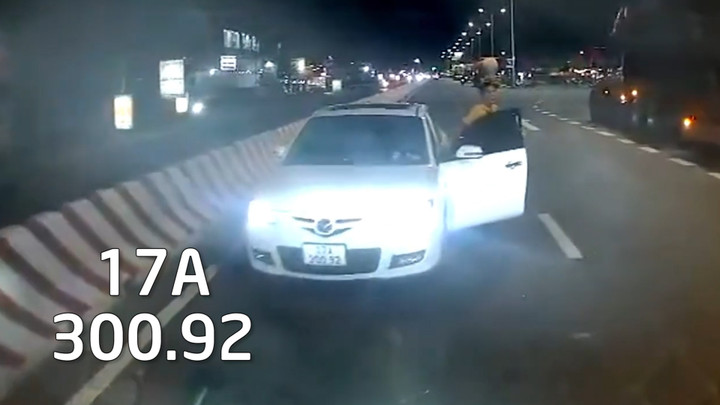 Tài xế ô tô 17A-300.92 đi ngược chiều trên quốc lộ 38B (Gia Lộc, Hải Dương) khi không được nhường đường, tài xế hung hăng xuống xe chửi bới, đe dọa người khác.