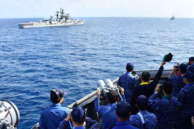 Tập trận chung của hải quân Ấn Độ và Nhật Bản. (Ảnh: Twitter)