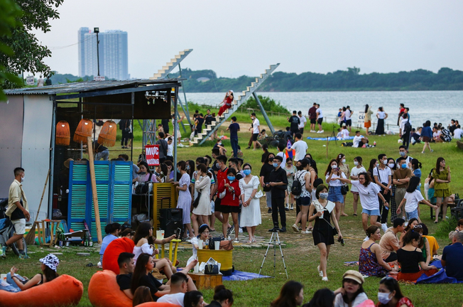Trước đó, mạng xã hội chia sẻ hình ảnh rất đông người dân tụ tập ở bãi đá sông Hồng, phường Nhật Tân, quận Tây Hồ để dã ngoại, chụp ảnh, hóng mát vào chiều 23/5.