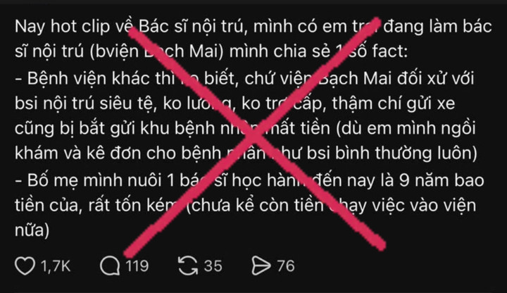 Phạt 7,5 triệu đồng người đăng tin bác sĩ nội trú Bệnh viện Bạch Mai không có lương
