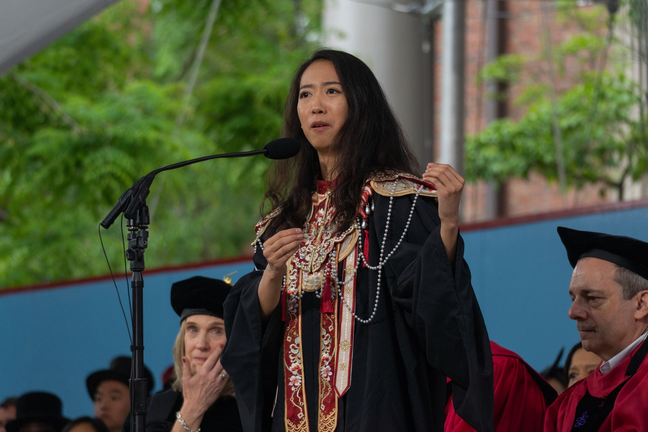 Yurong “Luanna” Jiang phát biểu tại Harvard. (Ảnh: The Harvard Crimson)