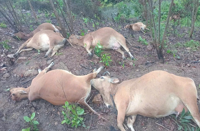 Ngày 2/10, người dân xã Kỳ Lạc (huyện Kỳ Anh, tỉnh Hà Tĩnh) phát hiện 9 con bò bị chết trong khu vực rừng trồng ở thôn Lạc Thắng. Ngay sau khi phát hiện sự việc, mọi người nhanh chóng trình báo với chính quyền địa phương và cơ quan chức năng.