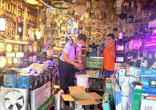 Cục Quản lý thị trường TP.HCM phát hiện một cửa hàng kinh doanh đồ điện tử bày bán hơn 700 sản phẩm đèn led, đèn trang trí không có hóa đơn chứng từ.