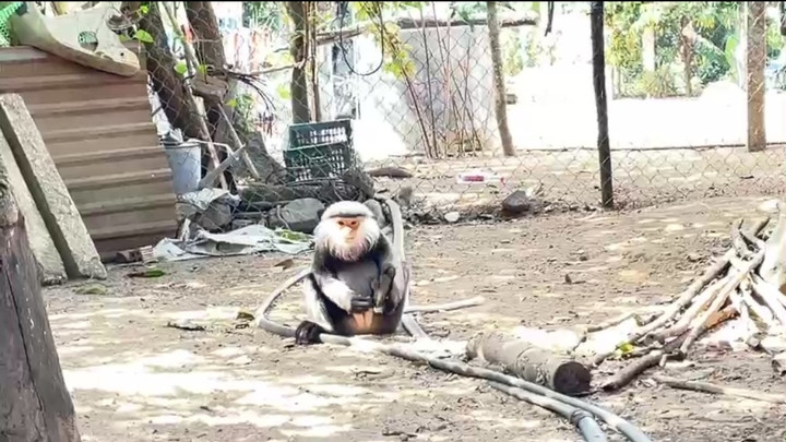Theo anh Viên, con voọc chà vá chân xám này rất dạn dĩ, thân thiện, không phá cây cối hay hoa màu. Vọoc lông màu trắng đen, nặng khoảng 20kg, thường xuất hiện ở địa phương vào những ngày đầu năm.
