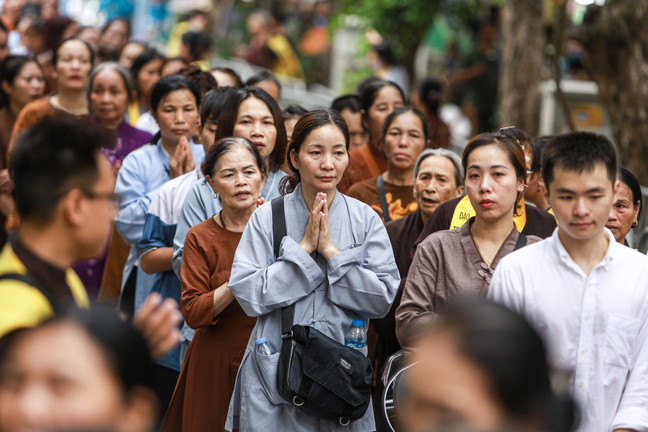Dòng người đổ về ngày một đông, nhanh chóng lấp kín vỉa hè rồi tràn cả xuống lòng đường Trần Hưng Đạo, Nguyễn Du và Quán Sứ. Lượng người rất lớn nhưng tất cả đều lặng lẽ di chuyển, không chen lấn, không xô bồ, giữ trọn không khí trang nghiêm, thanh tịnh của một sự kiện tâm linh đặc biệt.