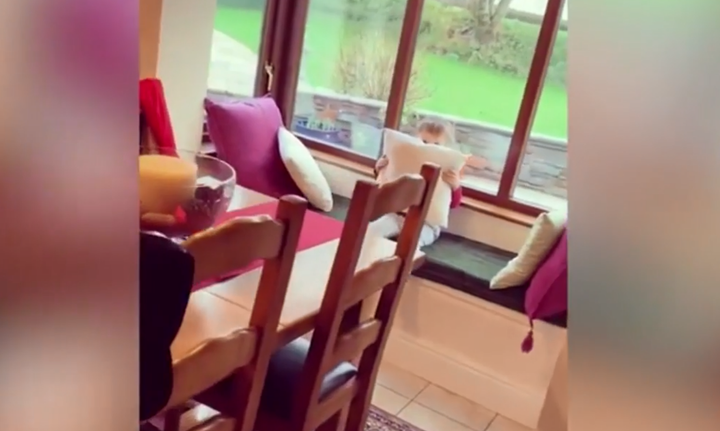 Thay vì tìm chỗ kín đáo, bé trai đáng yêu chỉ lấy gối che mắt và nghĩ bố không nhìn thấy mình.