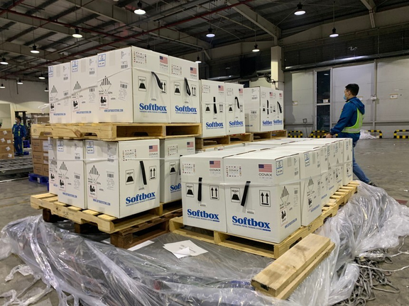 Hơn 2 triệu liều Pfizer về đến sân bay Tân Sơn Nhất ngày 10/12. (Ảnh: Tổng lãnh sự quán Mỹ tại TP.HCM)