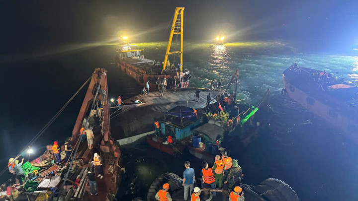 Dự kiến trong đêm nay sẽ hoàn thành việc cẩu tàu lên để đưa vào bờ.