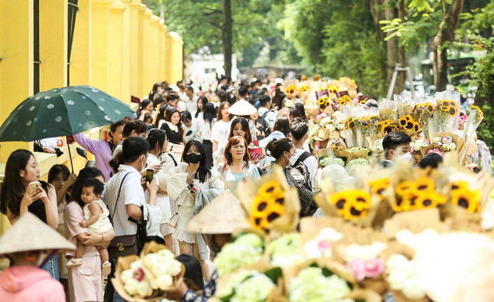 Nắm bắt nhu cầu cần mua phụ kiện chụp ảnh, nhiều người bán hoa dạo đã nhập nhiều loại hoa sặc sỡ để bán cho khách. Ngoài ra, họ còn trang trí gánh hoa của mình thật nổi bật để cho thuê chụp ảnh với giá 15.000 đồng/lượt.
