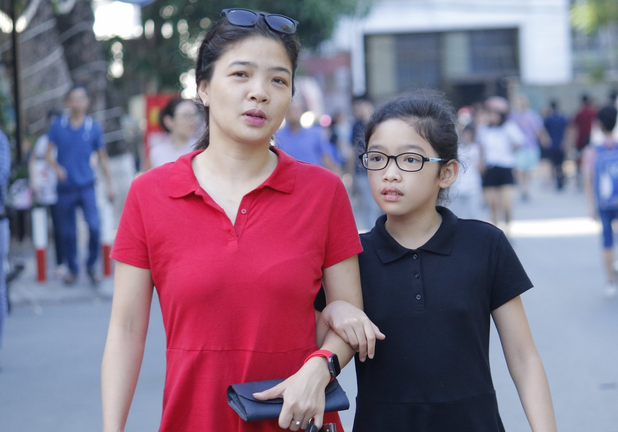 Phụ huynh Hà Nội đội nắng đưa con đi thi vào lớp 6 chuyên Ngữ