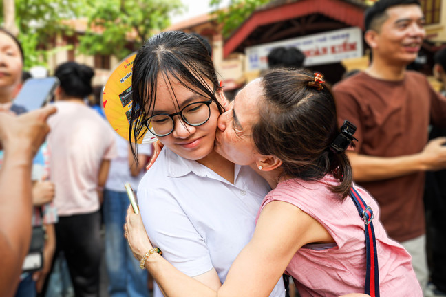 Ngay khi thấy bóng dáng con gái, một phụ huynh liền chạy tới trao cho con những tình cảm ấm áp. Hai mẹ con nhảy cẫng lên trong vui mừng hò hét "chắn chắn phải đỗ rồi mẹ ơi". Cùng với cảm xúc đó là những giọt nước mắt vui mừng của cả hai mẹ con.