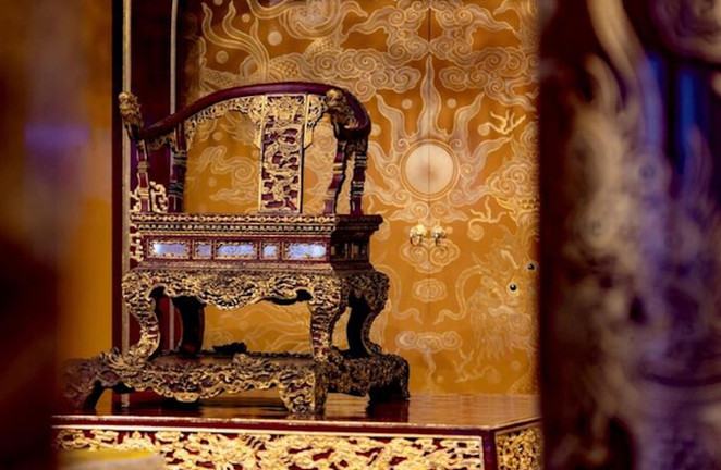 Bảo vật quốc gia Ngai vua triều Nguyễn trước khi bị phá hoại. (Ảnh: Hoàng Lê)