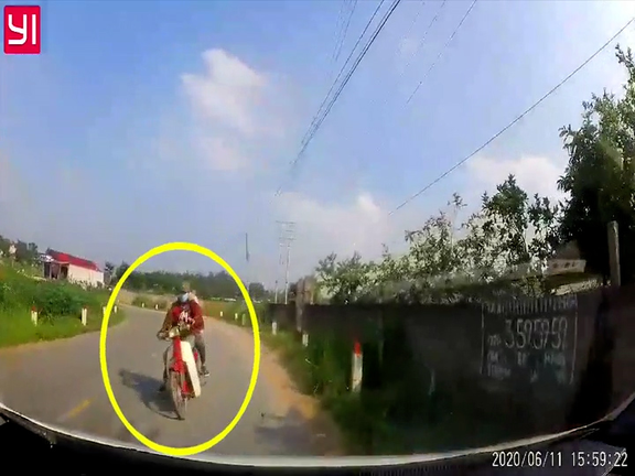 Hai thanh niên không đội mũ bảo hiểm, đi với tốc độ cao ôm cua lấn làn, suýt tông vào đầu xe ô tô đi ngược chiều ở Vĩnh Phúc.