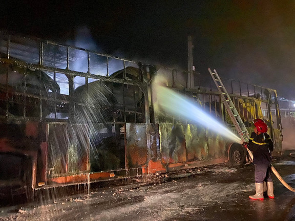 Quảng Ngãi: Xe đầu kéo chở 7 ô tô bốc cháy dữ dội trong đêm