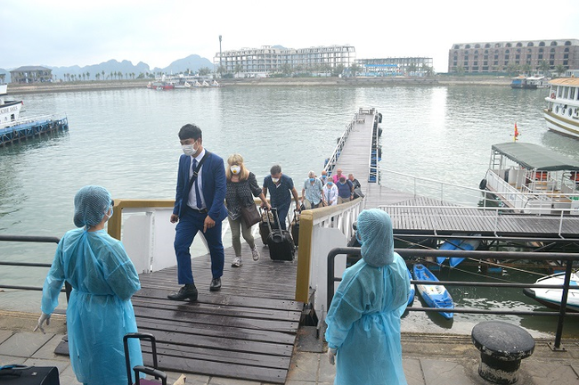 Hành khách trên tàu du lịch được ngành Y tế Quảng Ninh đưa đi cách ly.