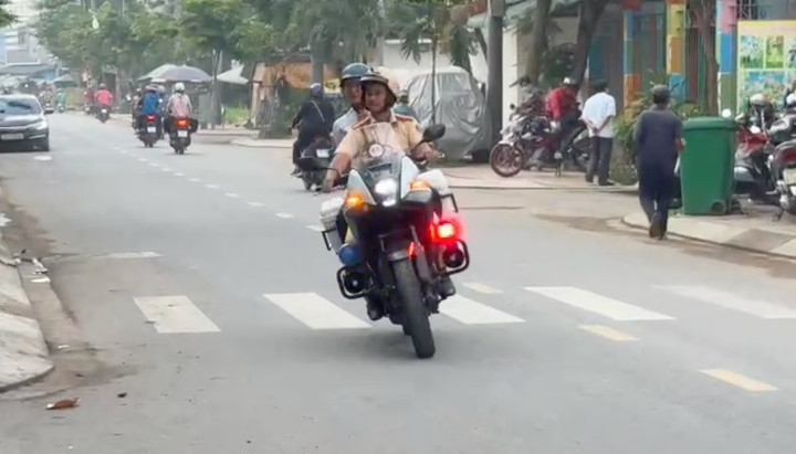 Thí sinh quên CCCD, được CSGT chở mô tô đặc chủng về nhà kịp giờ thi.