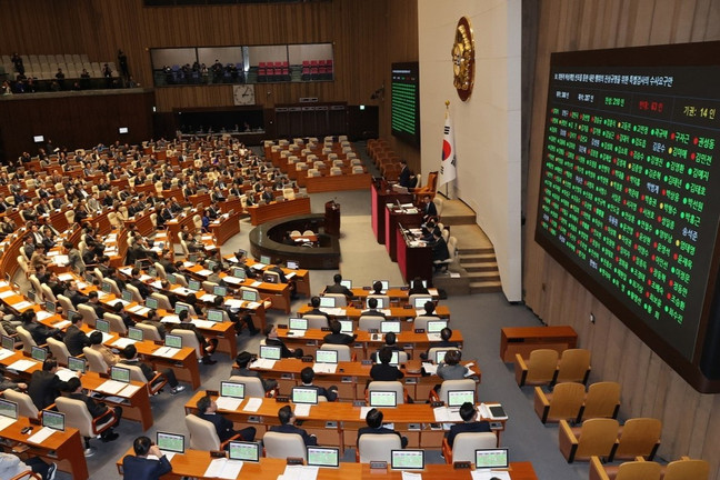 Quốc hội Hàn Quốc trong phiên họp toàn thể vào ngày 10/12. (Ảnh: Yonhap)