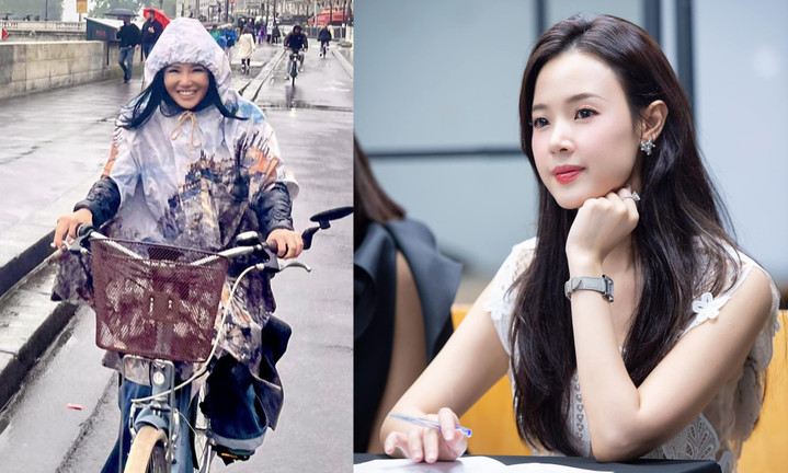 Diva Hồng Nhung đạp xe, mặc áo mưa để đi ngắm phố phường tại Pháp. Nữ ca sỹ cảm thấy bản thân yêu đời, vui vẻ sau khi xem một bộ phim hay. "Chỉ có tình yêu với đời, với người mới có thể tạo ra điều mầu nhiệm. Chưa tạo ra được thì hưởng với sự trân trọng tuyệt đối", cô viết.