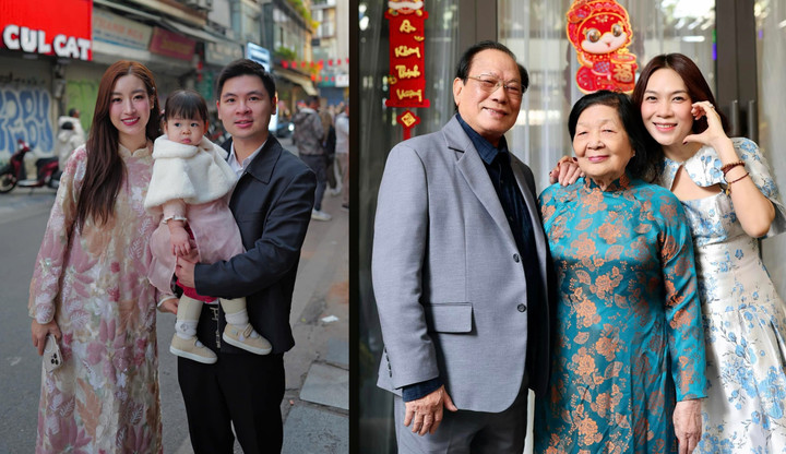Hoa hậu Đỗ Mỹ Linh hạnh phúc đón Tết bên chồng con, Mỹ Tâm vui vì cả gia đình sum họp đầy đủ bên nhau ngày Tết.