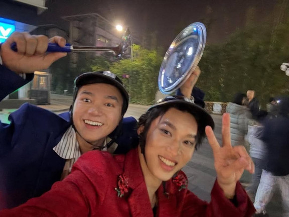 Bùi Công Nam và Kay Trần ''đi bão'' mừng Việt Nam vô địch sau khi diễn show. Dù không biết đường phố Hà Nội, hai anh tài vẫn mượn xe và hướng ra đường cùng dòng người hâm mộ, trên tay cầm chiếc vung nồi.