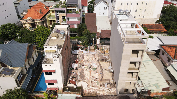 Sập nhà 4 tầng ở TP.HCM, giải cứu 7 người khỏi đống đổ nát