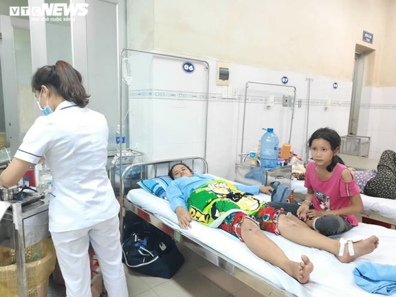 Đang chơi trong lán gần hiện trường, bé Ngân nghe ầm một tiếng, nhìn ra thấy mẹ bị vùi dưới bức tường sập, xung quanh la liệt người nằm.