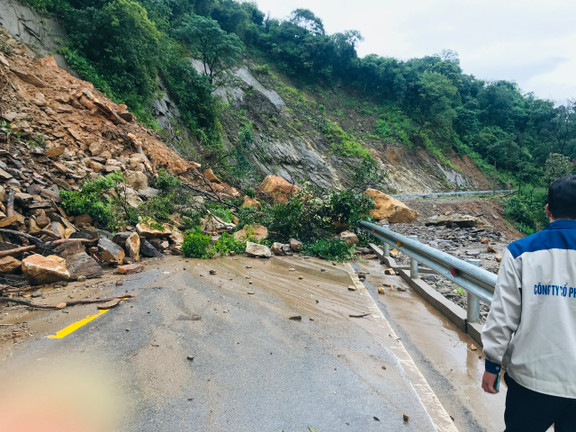 Do thời tiết cực đoan nên từ tối qua đến nay lực lượng chức năng chưa thể thu dọn số đất đá sạt lở. Dự kiến khi thời tiết thuận lợi hơn chúng tôi sẽ huy động máy móc, thiết bị xử lý lượng đất đá sạt lở trên”, ông Giang thông tin thêm.