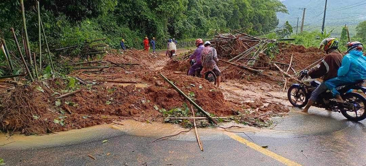 Chiều 30/7, tại đèo Đa Mi trên quốc lộ 55 - nối Bình Thuận với TP Bảo Lộc, tỉnh Lâm Đồng, có 5 điểm sạt lở khiến giao thông tê liệt, nhiều xe phải quay đầu.