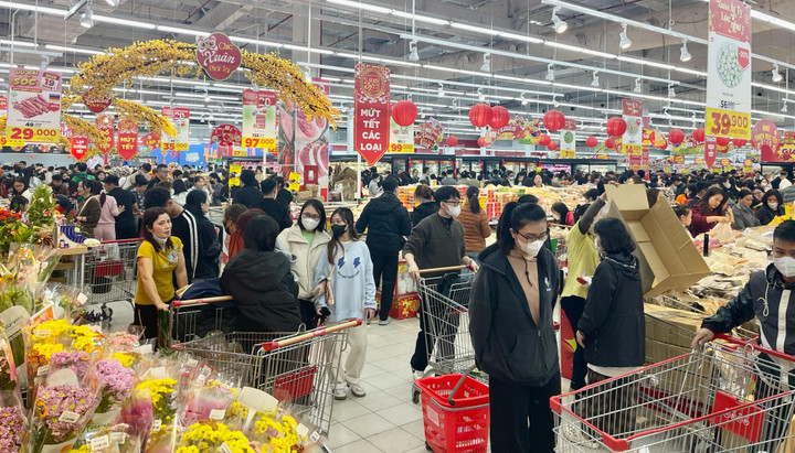 Siêu thị chật kín người mua sắm ngày cận Tết