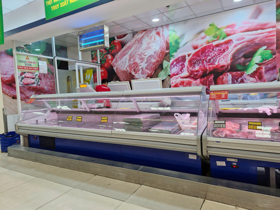 Cũng không thể mua được con gà như mong muốn, ông chuyển qua mua thịt heo. Cầm hộp thịt soi ngày sản xuất và hạn sử dụng, ông lại đặt xuống vì những hộp thịt đóng gói từ 26/1 (27 Tết) và đã gần sát hạn dùng.