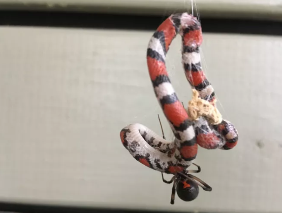 Một con nhện góa phụ đen làm thịt một con rắn nước. (Ảnh: Daniel R. Crook)