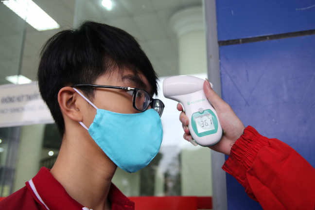 Tất cả sinh viên phải thực hiện đo thân nhiệt, nếu ai có biểu hiện ho, sốt, nhiệt độ cao sẽ được nhà trường xem xét về mặt sức khoẻ kỹ lưỡng trước khi bước vào lớp.
