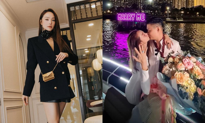 Minh Hằng hạnh phúc khoe nhẫn cầu hôn của bạn trai.