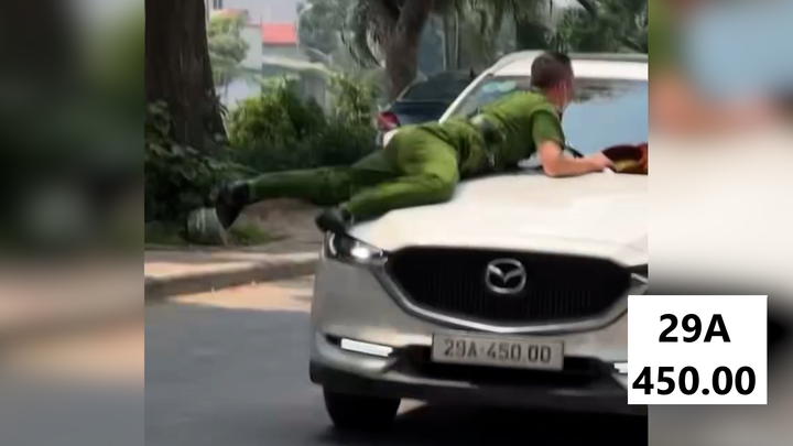 Tài xế điều khiển ô tô biển số 29A - 450.00 không chấp hành hiệu lệnh dừng xe, hất chiến sĩ công an lên nắp capo rồi tăng ga bỏ chạy tại huyện Thanh Trì, Hà Nội.