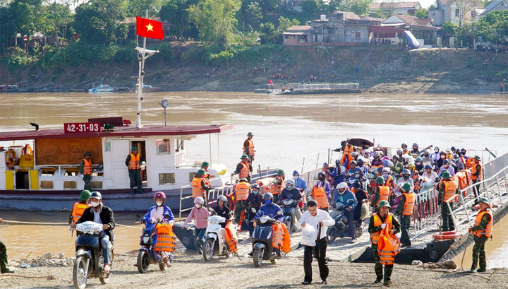 Tạm dừng lưu thông qua phà để chuẩn bị lắp lại cầu phao Phong Châu