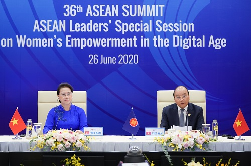 Chiều 26/6, Phiên họp đặc biệt của Hội nghị Cấp cao ASEAN lần thứ 36 về Tăng cường quyền năng phụ nữ trong thời đại số chính thức khai mạc. Đây là sáng kiến do Việt Nam đề xuất nhằm khẳng định cam kết của các Nhà lãnh đạo ASEAN trong việc thúc đẩy bình đẳng giới, nâng cao vai trò của phụ nữ trong quá trình xây dựng Cộng đồng, phát triển kinh tế - xã hội trong ASEAN.