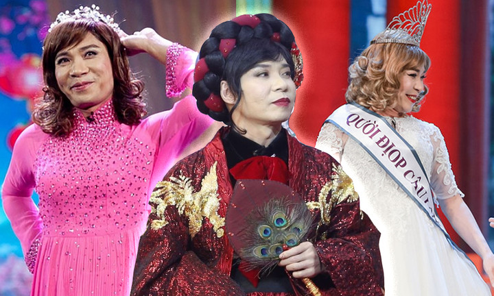 Nam nghệ sỹ đội vương miện, mặc váy dạ hội lộng lẫy khi xuất hiện trong "Táo quân" 2018.