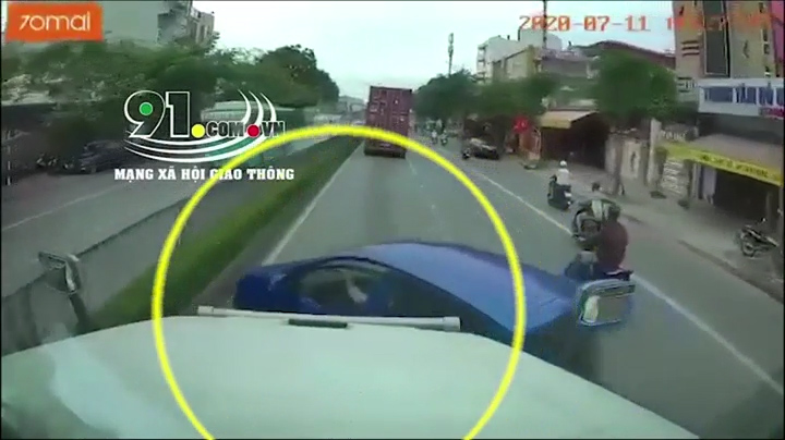 Sáng 11/7, ô tô lưu thông trên đường Nguyễn Văn Linh, Hải Phòng, không quan sát tạt đầu xe container và bị hất tung sang làn đường ngược chiều.