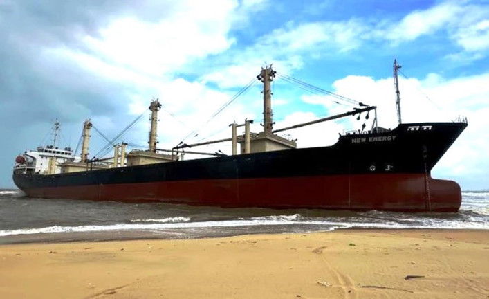 Trước đó, ngày 14/11/2023, tàu New Energy, thuộc sở hữu của Công ty TNHH một thành viên vận tải Viễn Dương Vinashin (dài 160m, rộng 22m, trọng tải 15.000 tấn) đang vận chuyển 13.895 tấn quặng sắt đi từ cảng Cửa Lò (Nghệ An) vào cảng Dung Quất (Quảng Ngãi). Sau khi bốc dỡ hàng, thuyền trưởng điều động tàu neo đậu tại vùng nước cảng biển Dung Quất thì bị sóng đánh trôi dạt vào bờ biển nói trên.
