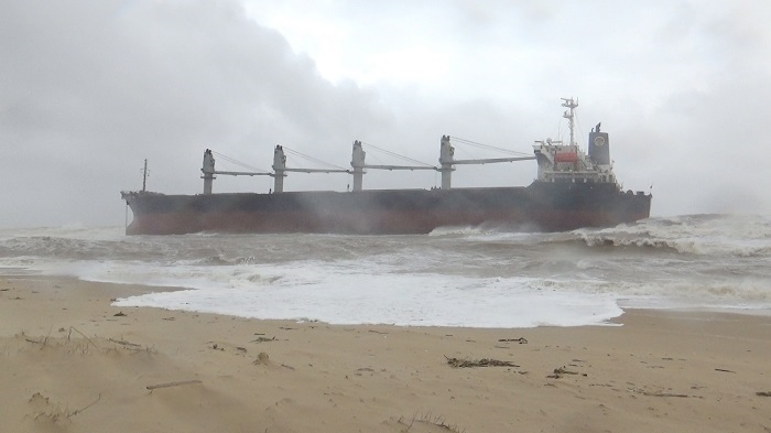 Khi đang trú mưa, bão tại cảng Hòn La (Quảng Bình), tàu hàng VTB Star đã bị sóng biển đánh đứt dây, trôi dạt và mắc cạn tại bờ biển thị xã Ba Đồn.