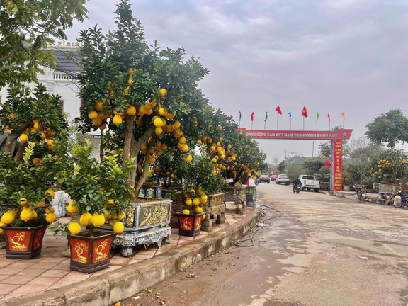 Những ngày cận Tết Nguyên đán 2025, làng hoa cây cảnh Nam Điền (Nam Trực, Nam Định) nhộn nhịp hơn bao giờ hết bởi cây giăng khắp phố, người mua bán từ sáng tới đêm.