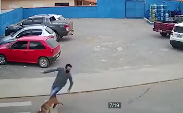 Thanh niên lực lưỡng bị chó tông ngã chỏng gọng