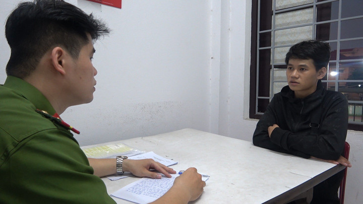 Cán bộ công an đang làm việc với Lê Văn Ty. (Ảnh: Công Quang)