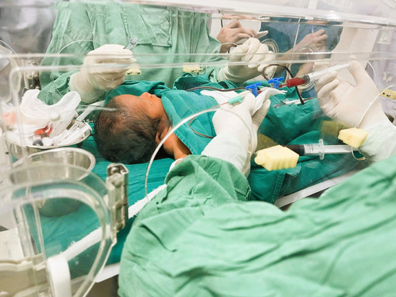 Ê-kíp bác sĩ khoa Sơ sinh đã khẩn trương thay máu cho bé bên cạnh các điều trị khác.