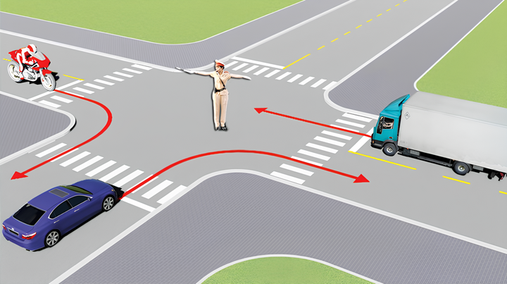 Theo Luật Giao thông đường bộ năm 2008, hiệu lệnh của người điều khiển giao thông là một bộ phận của hệ thống báo hiệu đường bộ. Hiệu lệnh của này được thể hiện bằng tay, cờ, gậy hoặc đèn tín hiệu ánh sáng điều khiển giao thông.