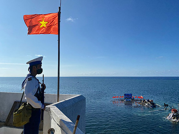 Ở huyện đảo Trường Sa, sáng thứ 2 hàng tuần và các dịp lễ trọng, đặc biệt là ngày đầu năm mới, chào cờ là nghi lễ luôn được tổ chức trang trọng. Hình ảnh lá cờ đỏ sao vàng tung bay đã góp phần cổ vũ, động viên mỗi cán bộ, chiến sỹ và người dân Trường Sa quyết tâm vượt qua mọi gian khó, bảo vệ và xây dựng quần đảo trở thành pháo đài phòng thủ vững chắc trên biển Đông.